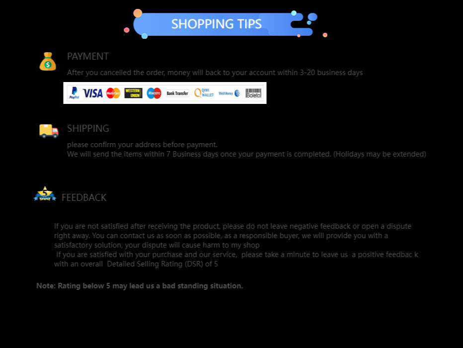 Ex: Shipping and return policies, size guides, and other common questions.